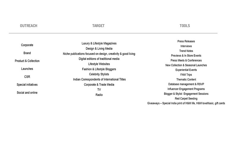Pan India launch communication plan presented to the H&M India director & brand manager